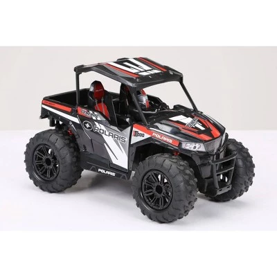 New Bright 1:14 scale full function New Bright Polaris General has the features of a real all terrain vehicle. Features include grippy non-marking tires and rechargeable battery by an internal USB cable. You will never have you to look for a missing charger again. Connect up to six vehicles with 2.4 GHz Technology and race interference free.