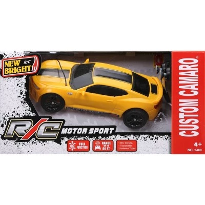 Own the road with an eye-catching 1:24 scale New Bright Radio Control Chevrolet Camaro Sports Car! With full function radio control, detailed trim and flashy wheels, no one can stop you. Adventures take you far thanks to the 80 foot range transmitter. Additional options include red badger buggy, Ford Raptor, Ford Mustang, and more The choice is yours!