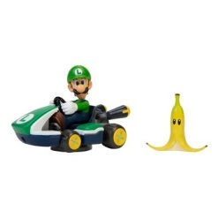 The World of Nintendo is proud to bring you the new Mario Kart Mini RC Racer. Have Luigi race in standard mode or flip into anti-gravity mode to perform drifts and tricks. With added performance you can pop wheelies and do 360 spins! Each RC has range up to 100’!