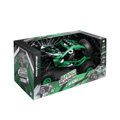 Get behind the wheel of the Power Crazeâ„¢ Sand Runner 1:10 scale 4×4 remote control Vehicle. Experience extreme off-roading with your Sand Runner with its powerful motors, you can easily climbs hills, rocks or anything else that gets in your way. The Power Crazeâ„¢ Sand Runner includes rugged knobby tires and real working shocks for high performance on steep hills, mud and rocky terrain. The Sand Runner includes a high quality rechargeable battery, that gives you up to 40 minutes of playtime on a full charge.Â