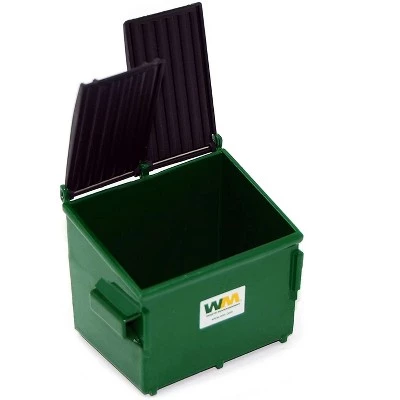 Brand new 1/34 scale diecast model of Refuse Trash Bin “Waste Management” Green die cast model by First Gear.Brand new box.Detailed exterior.True-to-scale detail.Split-top opening lid.Diecast metal construction.Manufacturer’s original unopened packaging.Made of diecast metal with some plastic parts.Dimensions approximately W-2, D-1.5, H-1.75 inches.Compatible with 1/34 scale Mack Terra Pro Front End Loaders.