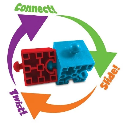 Connect, twist and slide these fun fidget blocks together! 8 different peg-and-groove configurations glide smoothly, turn easily, and hold snugly. Build robots, castles, letter forms and numbers — or just fiddle with them. A handful of blocks will keep fidgety fingers occupied for hours. Each pack includes 32 blocks (red, yellow, green, blue), 16 squares (1.25″), 16 rectangles (2.5″). Made in USA.