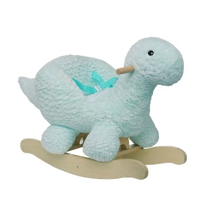 - SOFT PLUSH FABRIC: This rocking dinosaur features a soft, durable smooth but raised light sea-green plush fabric and built in seat for little ones.