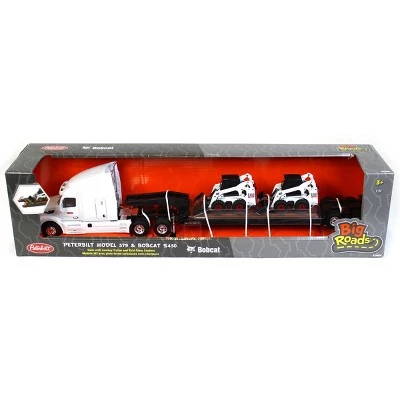 - 1/32 Big Roads Peterbilt 579 with Lowboy Trailer and (2) Die Cast Bobcat S450 Skidloaders