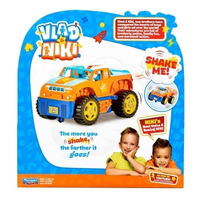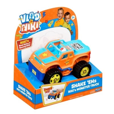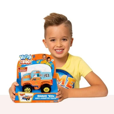 Shake ‘em, Race ‘em! Watch Niki roar to victory in his Shake Em’s Monster Truck! The more you shake, the farther his truck will go! Brothers Vlad and Niki and their mom, Victoria, have conquered the hearts of preschoolers all over the world! Their adventures are full of brotherly antics, family fun, and daredevil adventures. Inspired by the hit YouTube channel series, now you can take Vlad and Niki with you and create your own fun adventures together! Collect all the Vlad & Niki figures, role play toys, vehicles and playsets!
