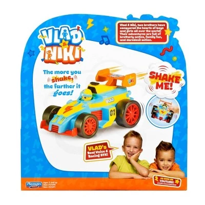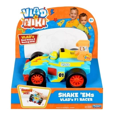 Shake ‘em, Race ‘em! Watch Vlad speed off to victory in his Shake ‘Ems F1 Racer! The more you shake, the farther his racer will go! Brothers Vlad and Niki and their mom, Victoria, have conquered the hearts of preschoolers all over the world! Their adventures are full of brotherly antics, family fun, and daredevil adventures. Inspired by the hit YouTube channel series, now you can take Vlad and Niki with you and create your own fun adventures together! Collect all the Vlad & Niki figures, role play toys, vehicles and playsets!
