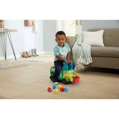 - Roll into recycling! Press, scoop and load six colorful blocks into the ride-on truck; blocks store inside for easy cleanup