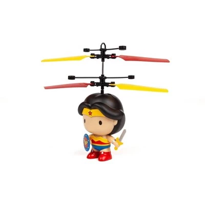 Introducing the DC Licensed Wonder Woman 3.5 Inch Flying Figure UFO Big Head Helicopter! Help save the day with this Wonder Woman big head helicopter featuring a coaxial rotor system for precise movement and increased stability when hovering. The UFO Big Head Helicopters body is also constructed with a durable material making it strong yet lightweight so you don’t have to worry about breaking anything when it lands a bit too rough. Using infrared motion sensitive technology, the UFO big head will detect nearby objects and is programmed to move away from them. Simply turn on and launch to get started, holding your hand underneath it will keep it hovering up in the air. When you’re done flying you can try and grab it but you can also use the included remote control to shut down and recover safely, it’s that easy! A must have for fans of helicopters, get the DC Licensed Wonder Woman 3.5 Inch Flying Figure UFO Big Head Helicopter today!
